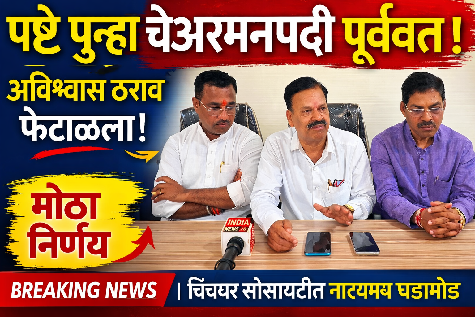 वाडा (प्रतिनिधी): वाडा तालुक्यात प्रतिष्ठित मानल्या जाणाऱ्या चिंचघर शेतकरी सेवा सहकारी सोसायटीमध्ये मोठी राजकीय घडामोड घडली आहे. चेअरमन प्रा. धनंजय पष्टे यांच्याविरोधात दाखल करण्यात आलेला अविश्वास ठराव सहाय्यक निबंधक कार्यालयाने फेटाळून लावला असून मानसिक दडपणाखाली दिलेला त्यांचा राजीनामा देखील अमान्य ठरवण्यात आला आहे. यामुळे १३ मार्च रोजी झालेल्या विशेष सभेत बहुमताने प्रा. धनंजय पष्टे यांना पुन्हा चेअरमनपदी पूर्ववत करण्यात आले. या निर्णयामुळे सोसायटीच्या राजकारणात मोठी उलथापालथ झाल्याचे बोलले जात आहे.